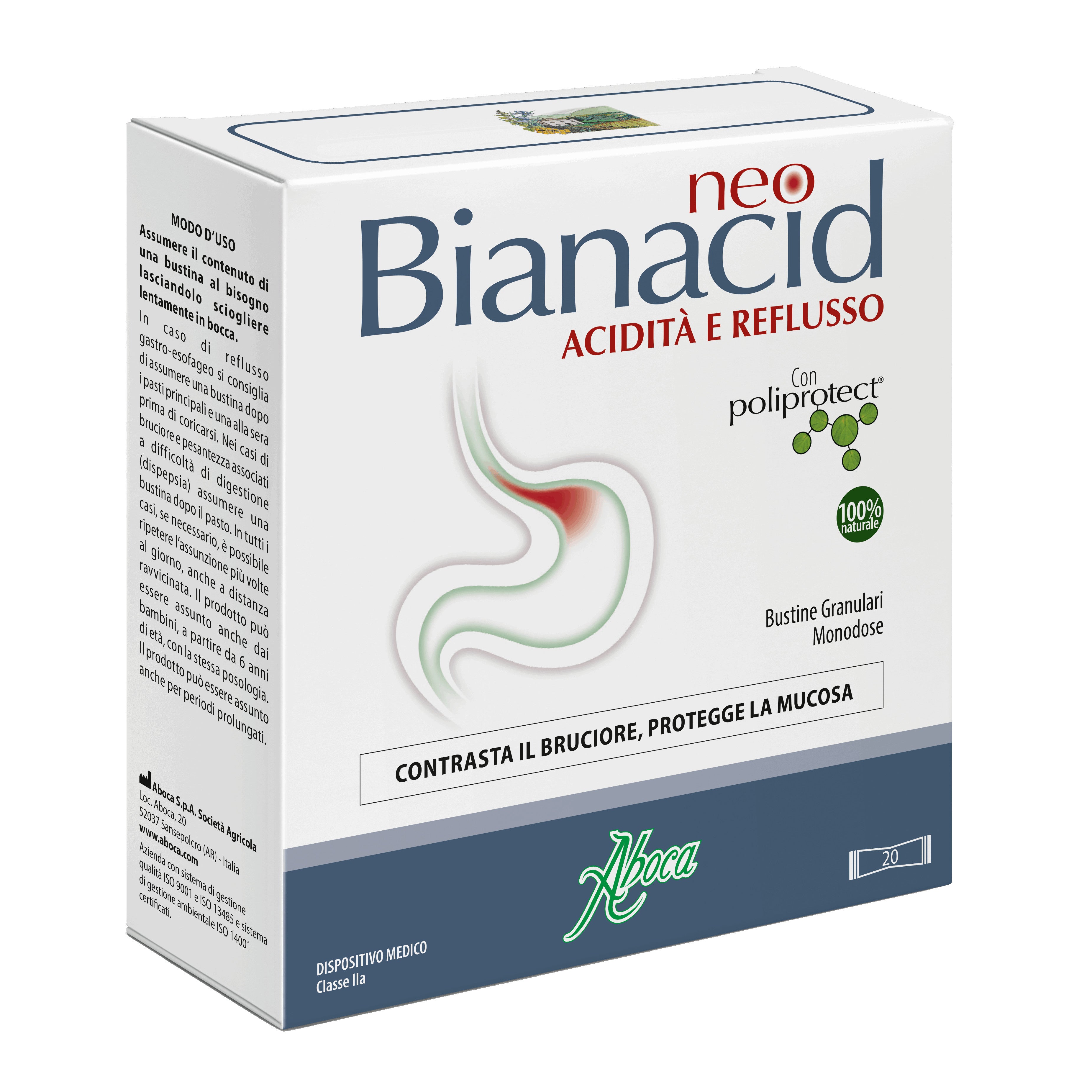 neoBianacidProdotto a base di complessi molecolari vegetali e minerali, che svolge un'azioneprotettiva e quindi lenitiva della mucosa gastro-esofagea utile per...