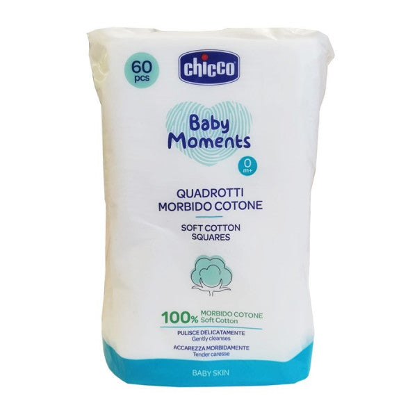 BABY MOMENTS QUADROTTI MORBIDO COTONE CHICCO - 100% COTONE Ideali per rimuovere delicatamente le impurità dalla pelle del bambino, senza...