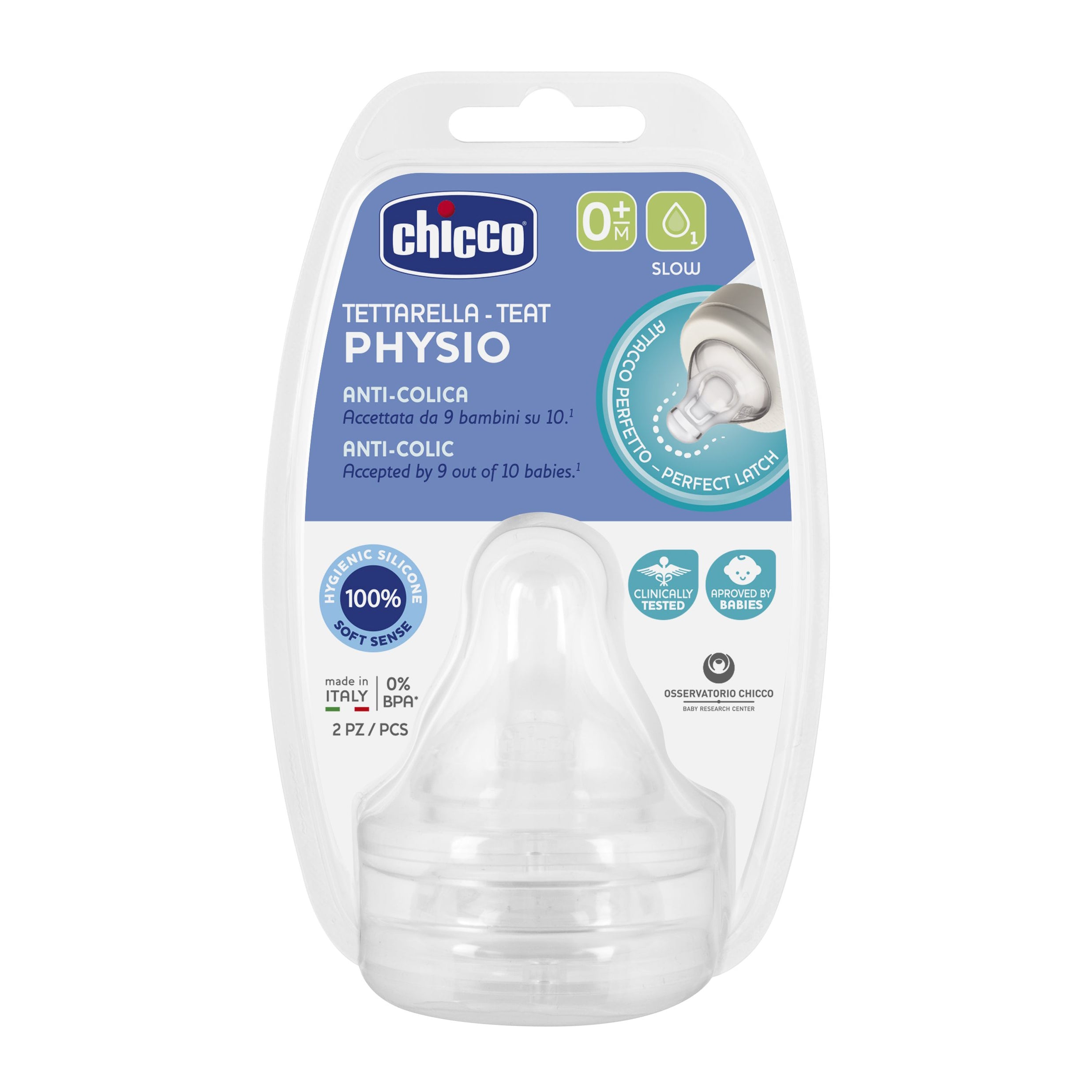 chicco TETTARELLA PERFECT5 0M+ Silicone Descrizione La forma ergonomica, simmetrica, piatta e allungata della tettarella in silicone Physio di Chicco...