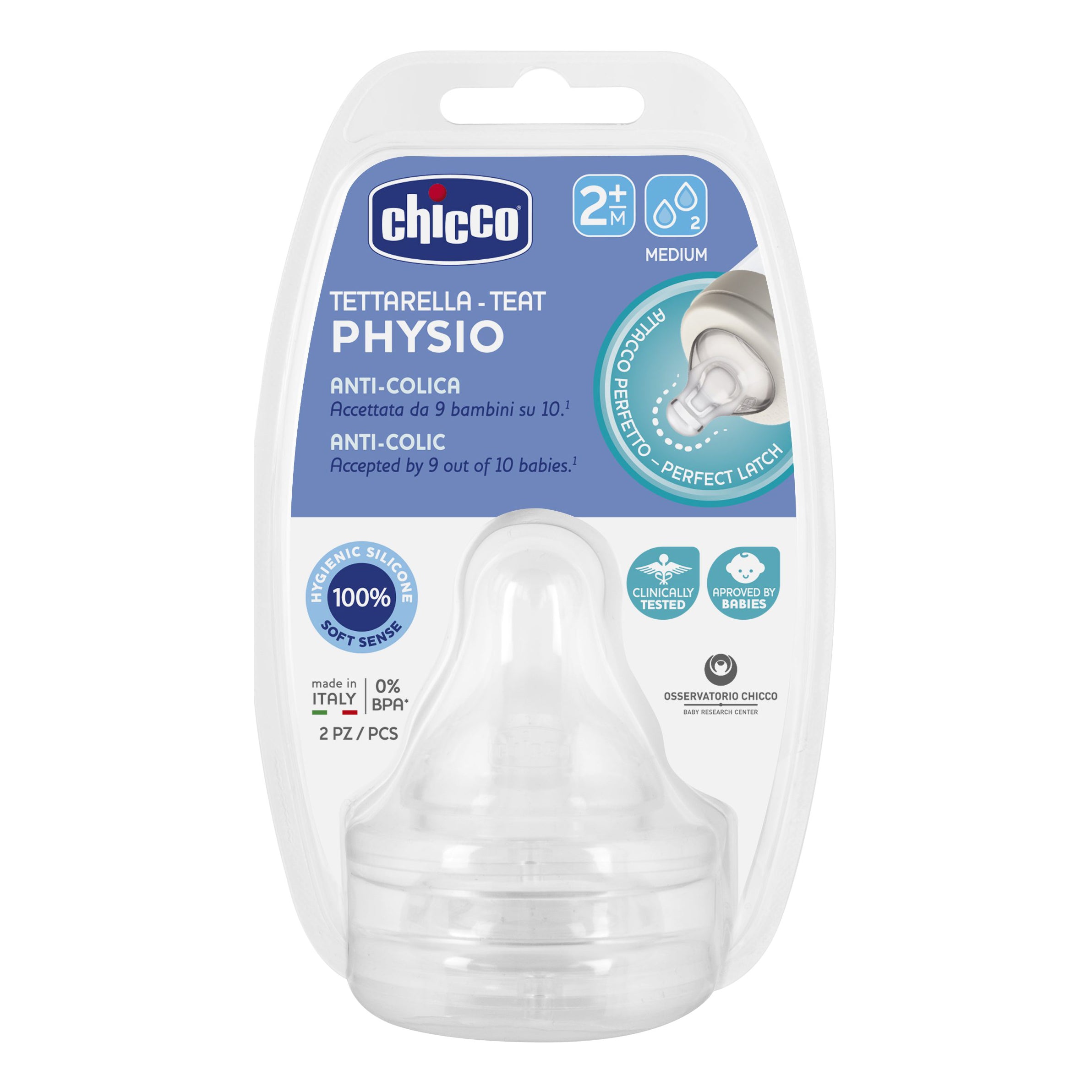 chicco TETTARELLA PERFECT5 2M+ Silicone Descrizione La forma ergonomica, simmetrica, piatta e allungata della tettarella in silicone Physio di Chicco...