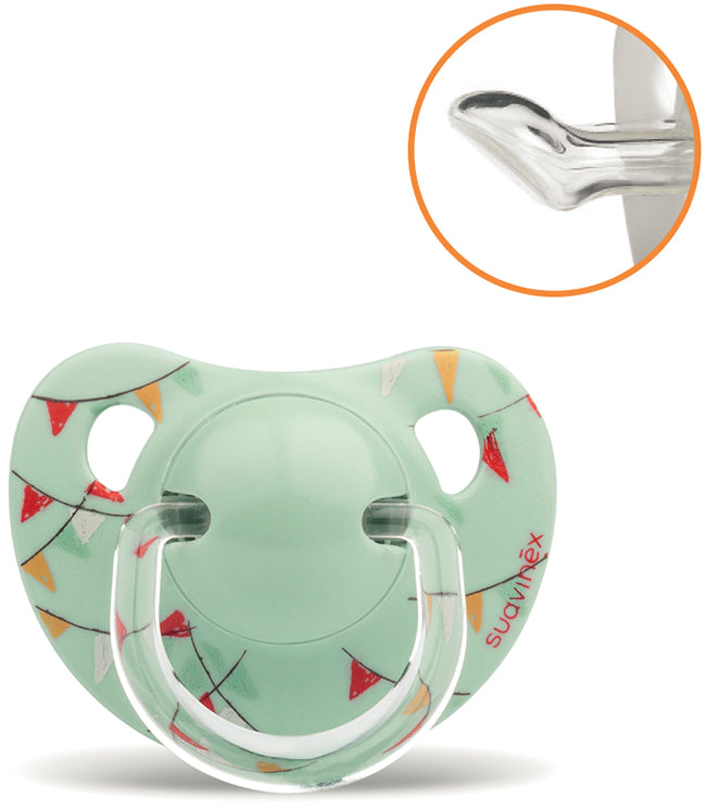 suavinex Succhietto anatomico in silicone 6/18 Descrizione Succhietti anatomici con tettarella in lattice. La forma del ciuccio riproduce il capezzolo...
