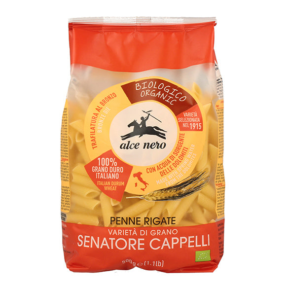 alce nero Penne rigate Varietà di grano Senatore Cappelli biologico - organic Ingredienti Semola di grano duro*, acqua. *biologico Informazioni...