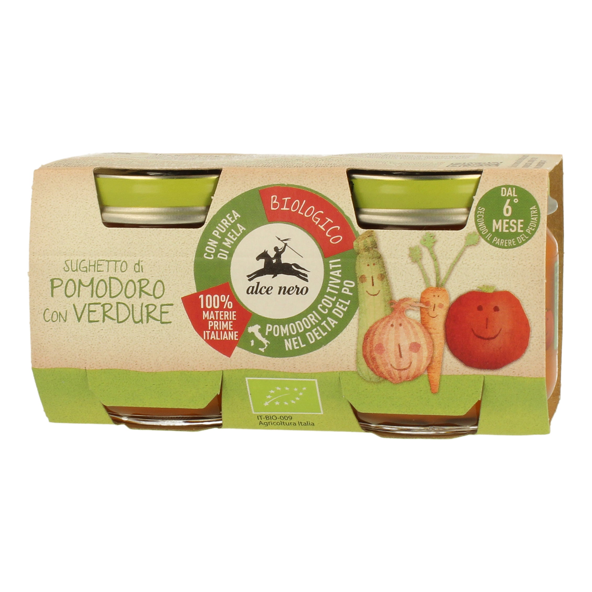alce nero SUGHETTO di POMODORO con VERDURE Descrizione Sugo di pomodoro con verdure bio.A partire dal 6° mese. Ingredienti Passata...