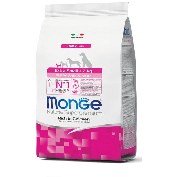 Monge Extra Small <2 kg ADULT POLLO Descrizione Alimento completo e bilanciato per cani adulti di taglia extra small (<2...