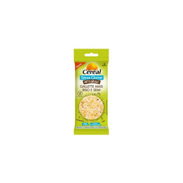 CéréalSenza GlutineINTEGRALE GALLETTE MAIS RISO E SEMI Descrizione Gallette con mais, riso e semi di chia, lino e amaranto. A...