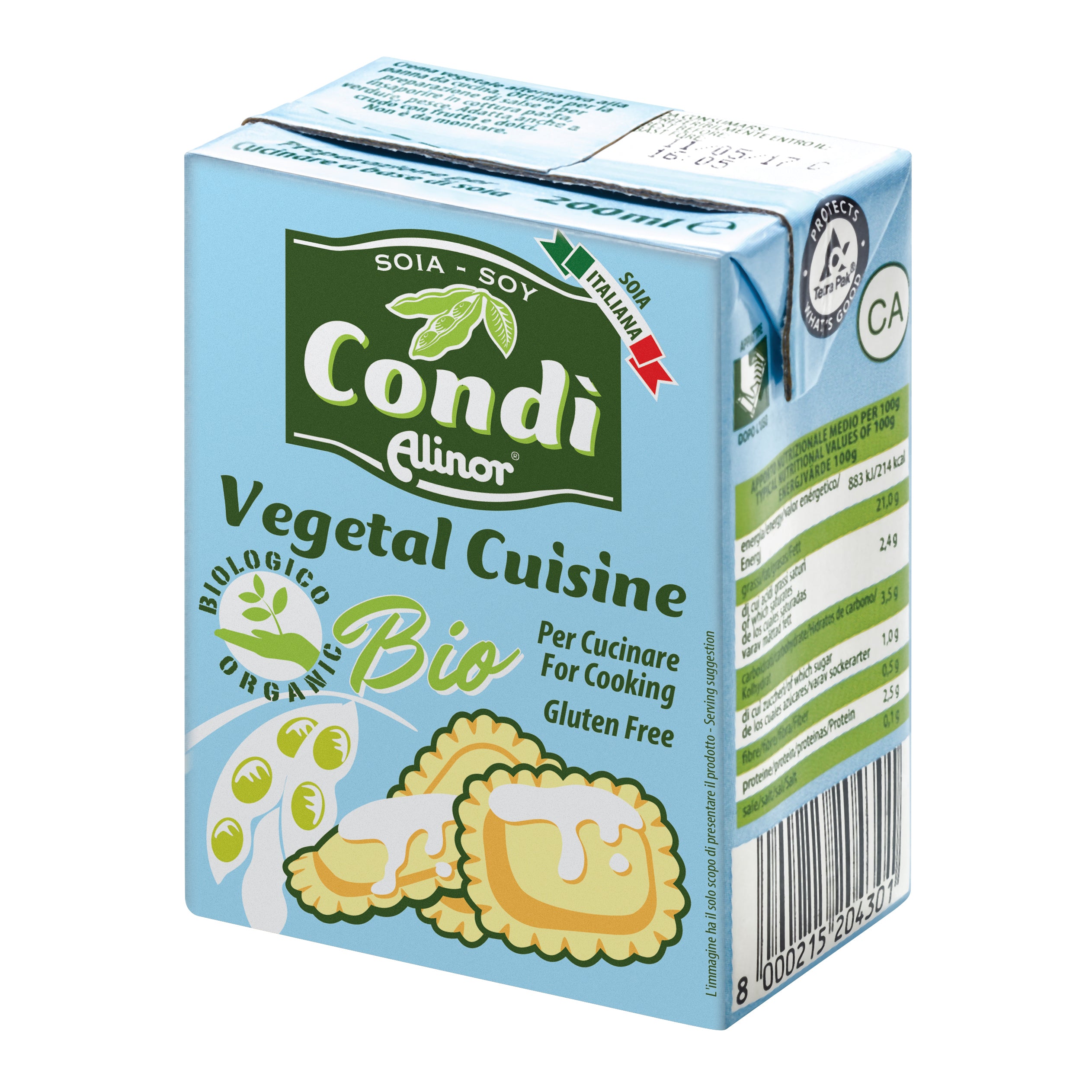Condì Panna a base di oli vegetali e di soia, 100% vegetale. Ottima in cucina, per la preparazione dei piatti...