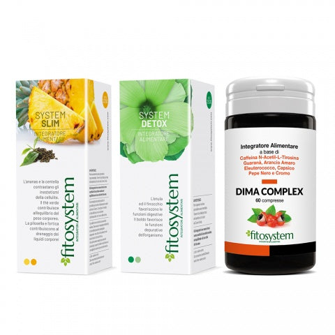 fitosystem DIMA COMPLEX Descrizione Integratore alimentare a base di Caffeina, N-Acetil-L-Tirosina, Guaranà, Arancio Amaro, Eleuterococco, Capsico, Pepe Nero e Cromo....