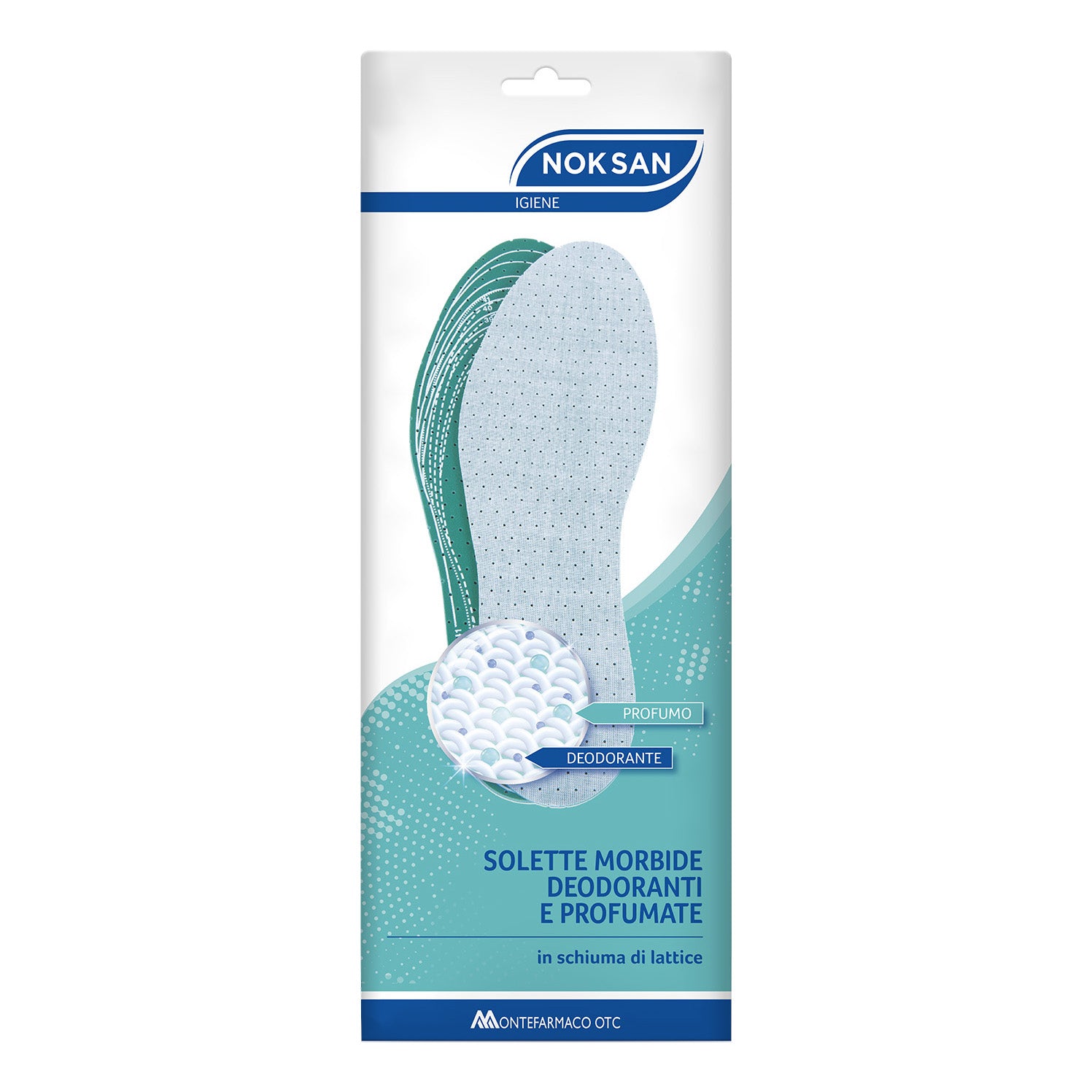 NOK SANSOLETTEMORBIDEIN SCHIUMA DI LATTICEPROFUMATEL'essenza racchiusa inmilioni di microcapsulesi libera gradualmentesotto la ripetutapressione del piedeDEODORANTILa sostanza battericidache elimina gli odorisi...