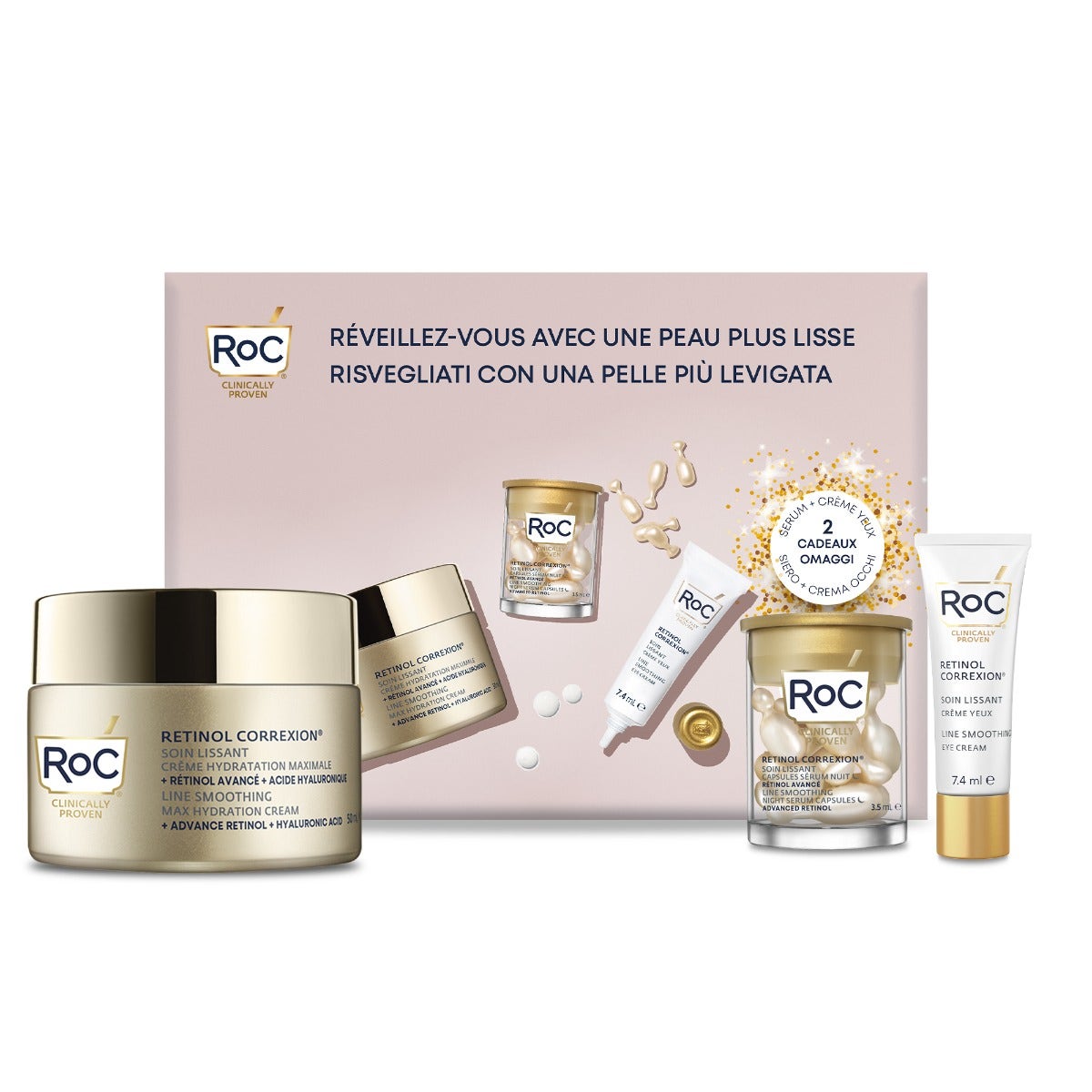 Roc Cofanetto Retinol Correxion Line Smoothing Crema Viso 50ml + Contorno Occhi 7,4ml + Siero Notte 10 Capsule