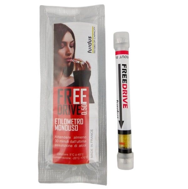 turdusFREE DRIVE ETILOMETRO MONOUSO Descrizione Etilometro monouso. Attendere almeno 30 minuti dall'ultima assunzione di alcool. Modalità d'uso Riscaldare per 30...