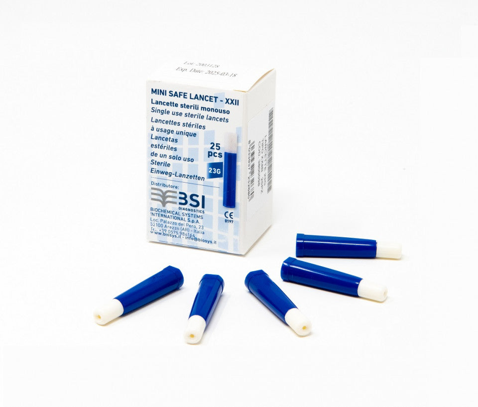 MINI SAFE LANCET - XXII Descrizione Lancette sterili monouso. Sistema sterile monouso apirogeno atossico costituito dalancetta sterile pungidito già incorporata...