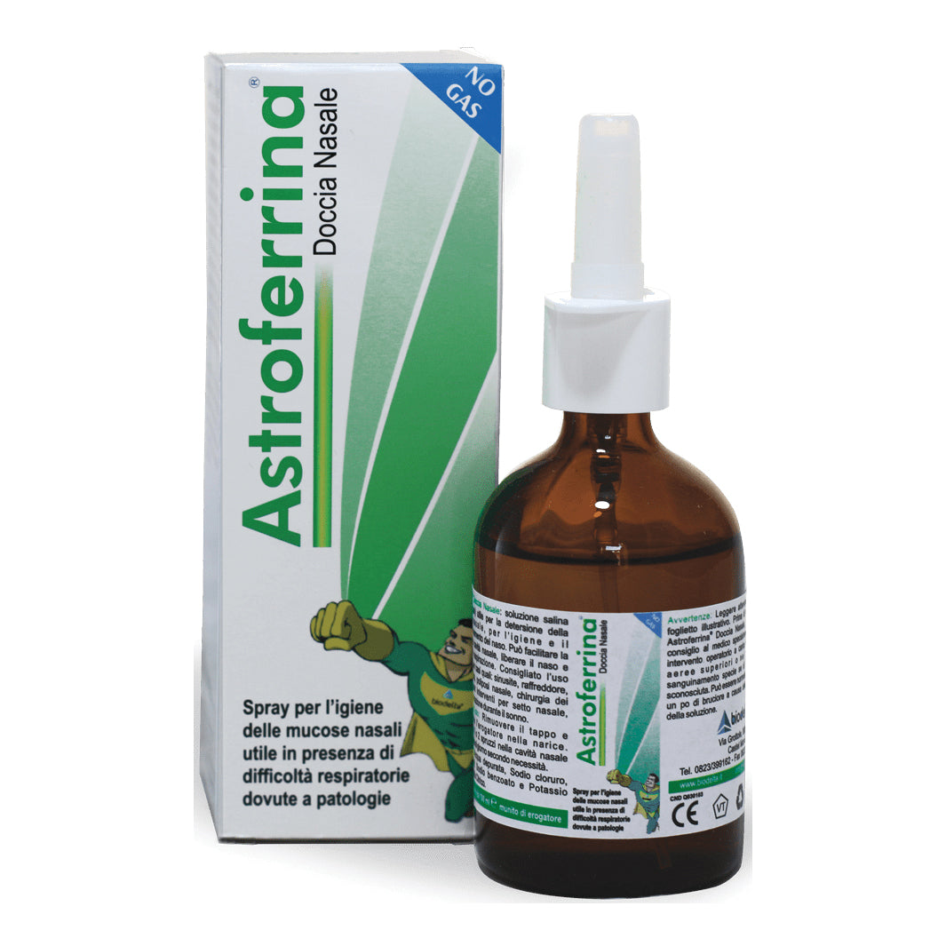 Astroferrina Doccia Nasale Dispositivo Medico CE, classe I. Spray per l’igiene delle mucose nasali utile in presenza di difficoltà respiratorie...