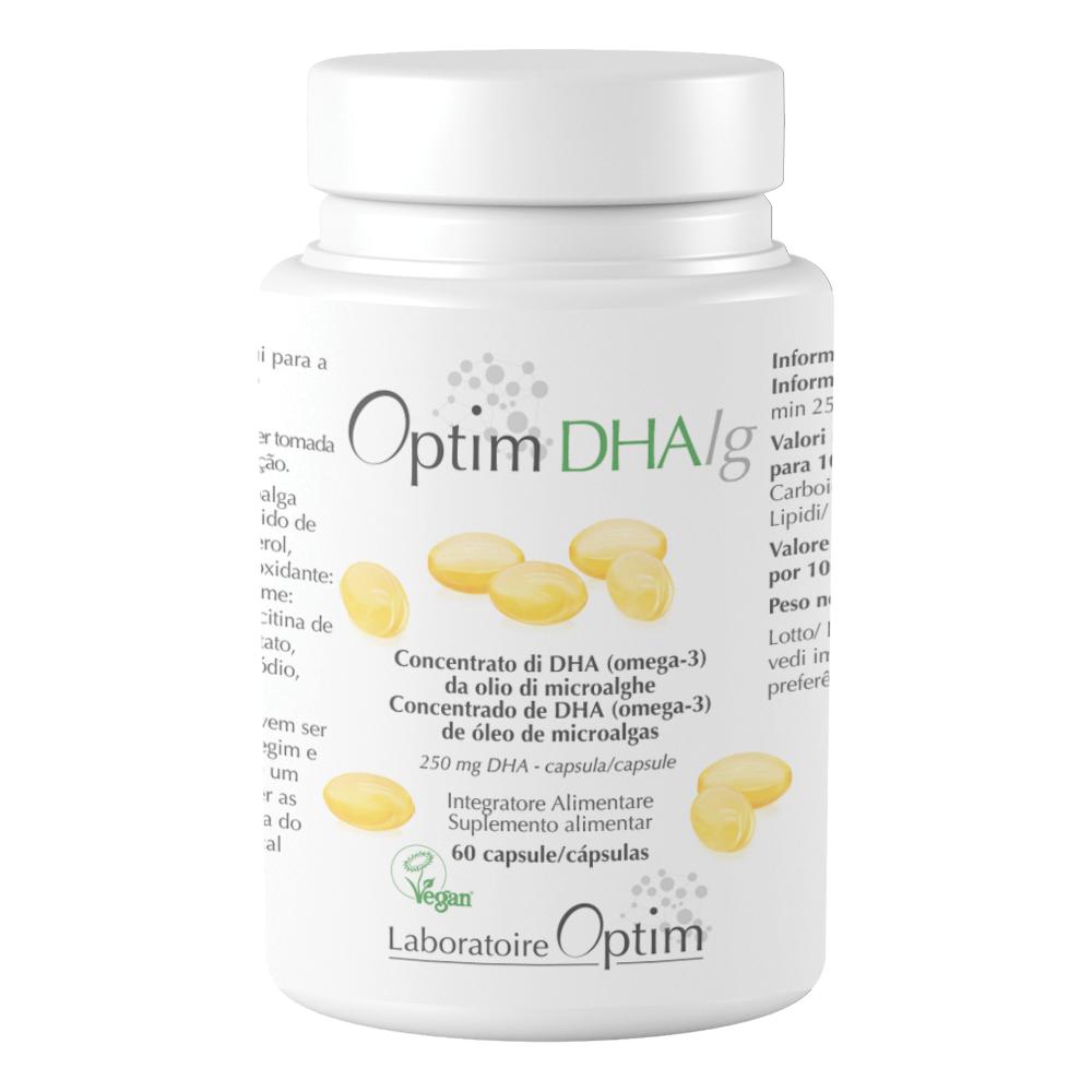 Optim DHA/g Descrizione Integratore alimentare. Concentrato di DHA (omega-3) da olio di microalghe. 25O mg al giorno di DHA contribuiscono...