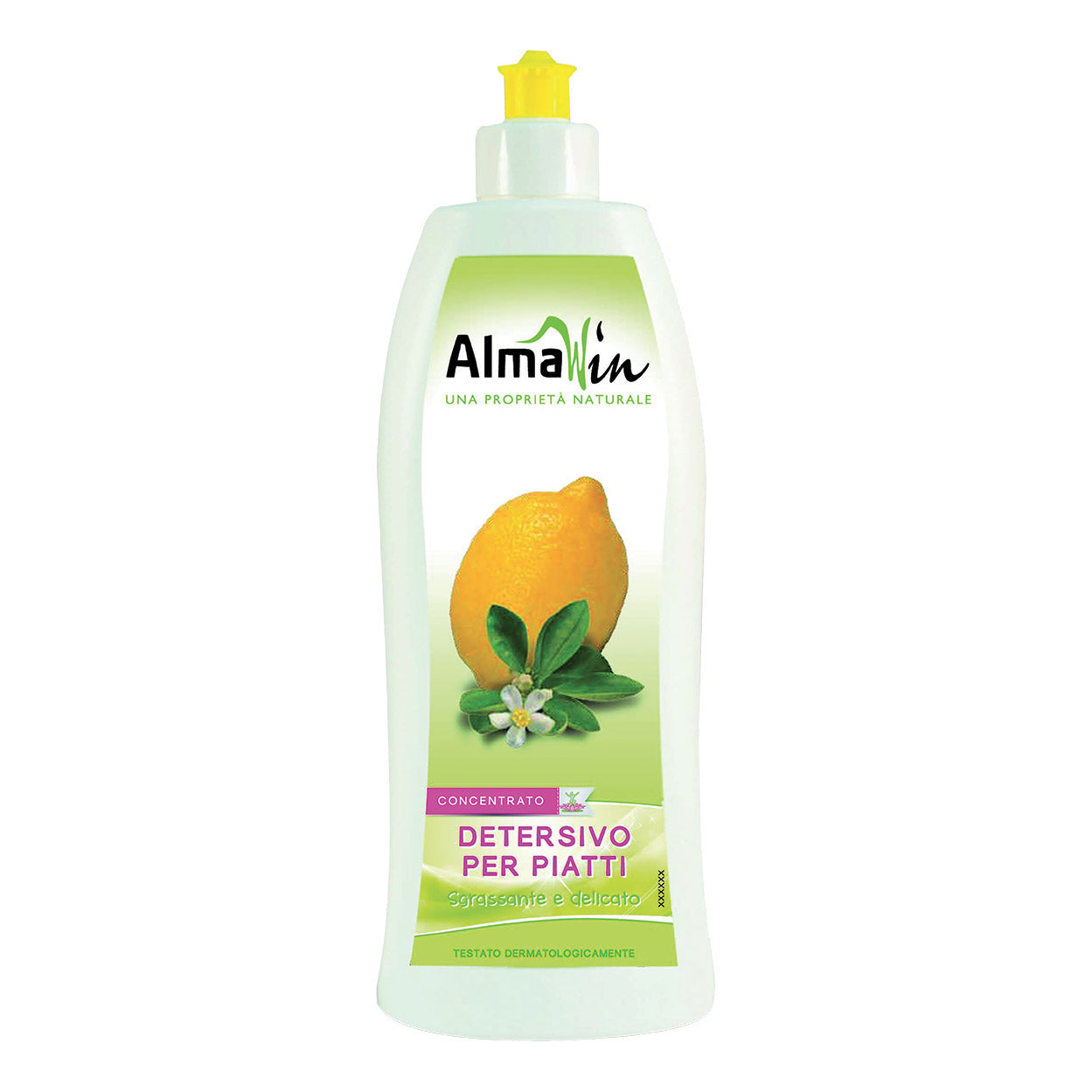 AlmaWin Detersivo per piatti a mano. Sgrassante delicato, formulato con sostanze detergenti (tensioattivi) a base di grassi vegetali, altamente biodegradabili...