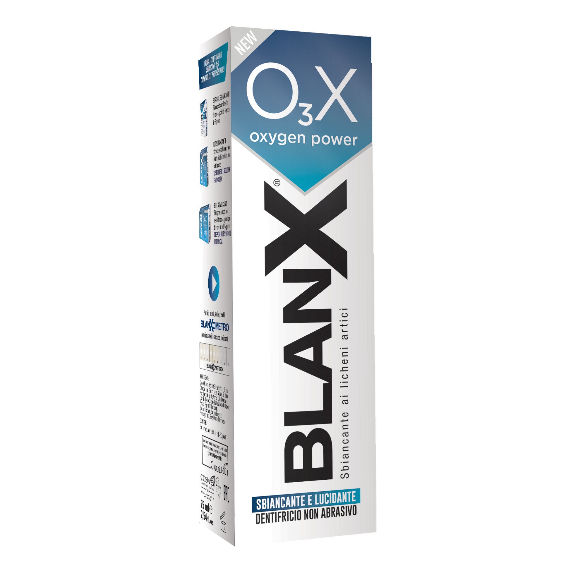 BLANX O3X DENTIFRICIO SBIANCANTE E LUCIDANTE Descrizione L'esclusiva formula di BlanX combina la nuova tecnologia sbiancante O3X a base di...