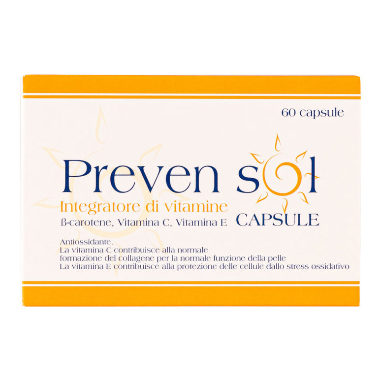 Preven sol Capsule Descrizione Integratore alimentare di vitamine. Con beta-carotene, vitamina C e vitamina E. La vitamina C contribuisce alla...