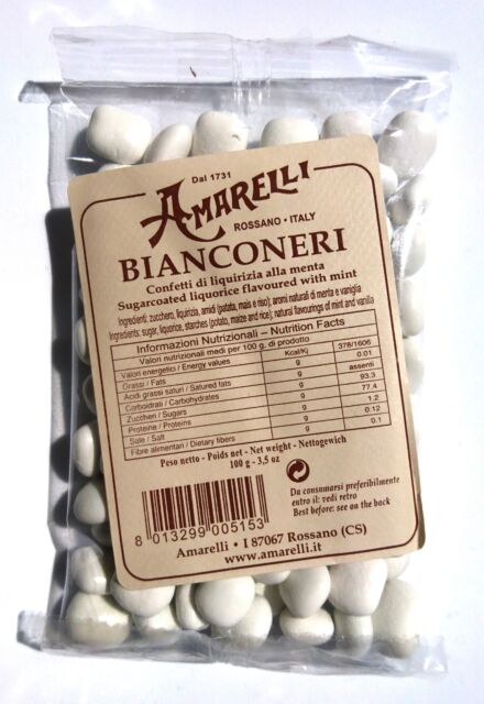 Liquirizia Bianconeri Caratteristiche: favette di liquirizia pura alla menta, confettate con un sottile strato di zucchero, in scatola metallica.Disponibile anche...