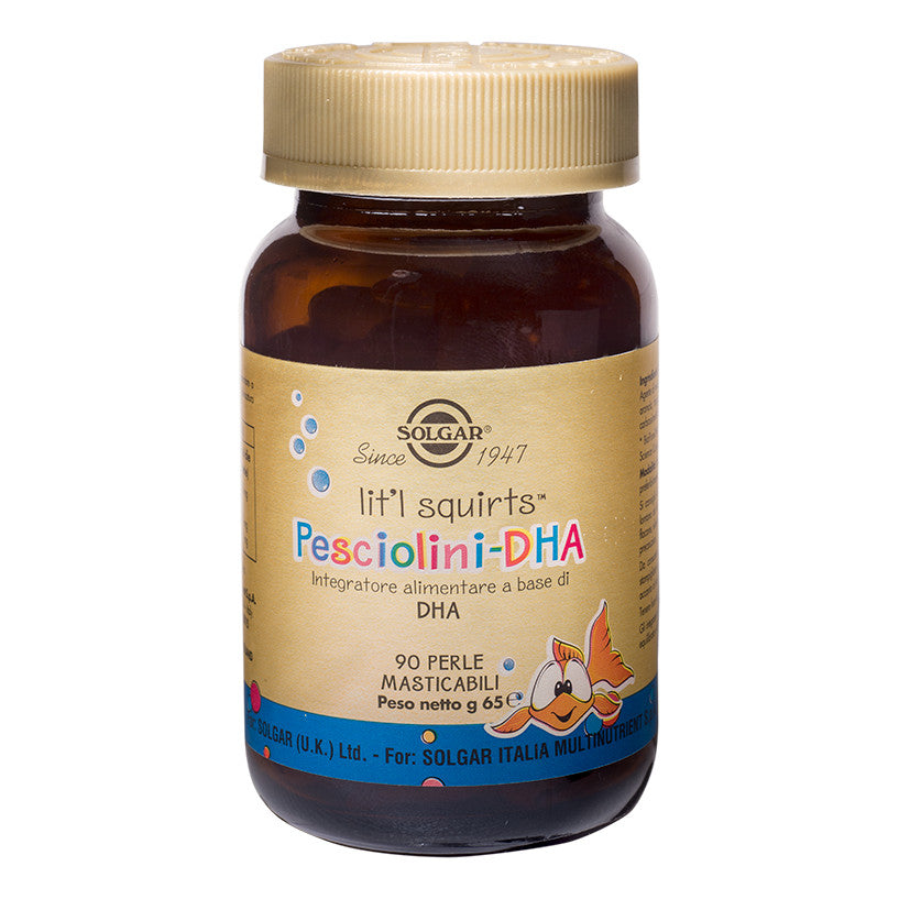 Pesciolini-DHA Integratore alimentare di DHA, utile per favorire la funzione visiva e cerebrale. Gusto: frutta mista. Ingredienti per 2 perle...