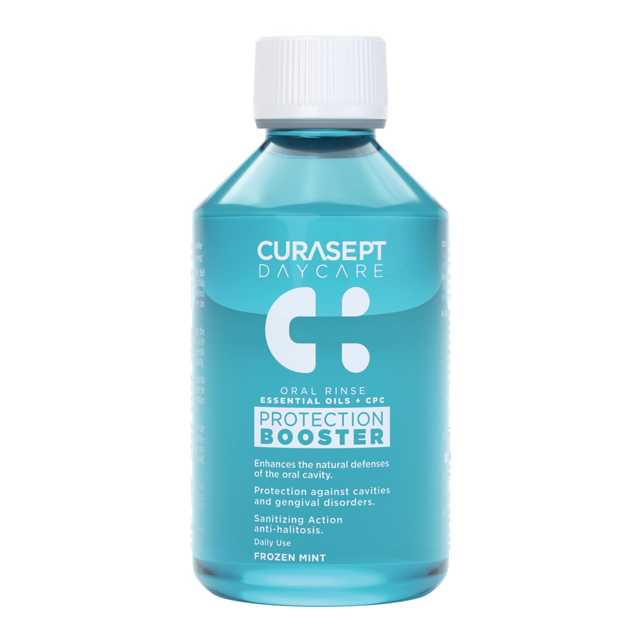 CURASEPT DAYCARE PROTECTION PLUS Collutorio gusto menta fredda con agenti antibatterici DescrizioneCon Cetilpiridinio 0,1%, Oli essenziali, Zinco, Fluoro e Xilitolo....