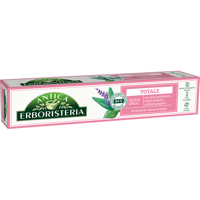 ANTICA ERBORISTERIA TOTALE Descrizione La pasta dentifricia Totale con Salvia e Menta: aiuta a ridurre i batteri fino al 99%*,...