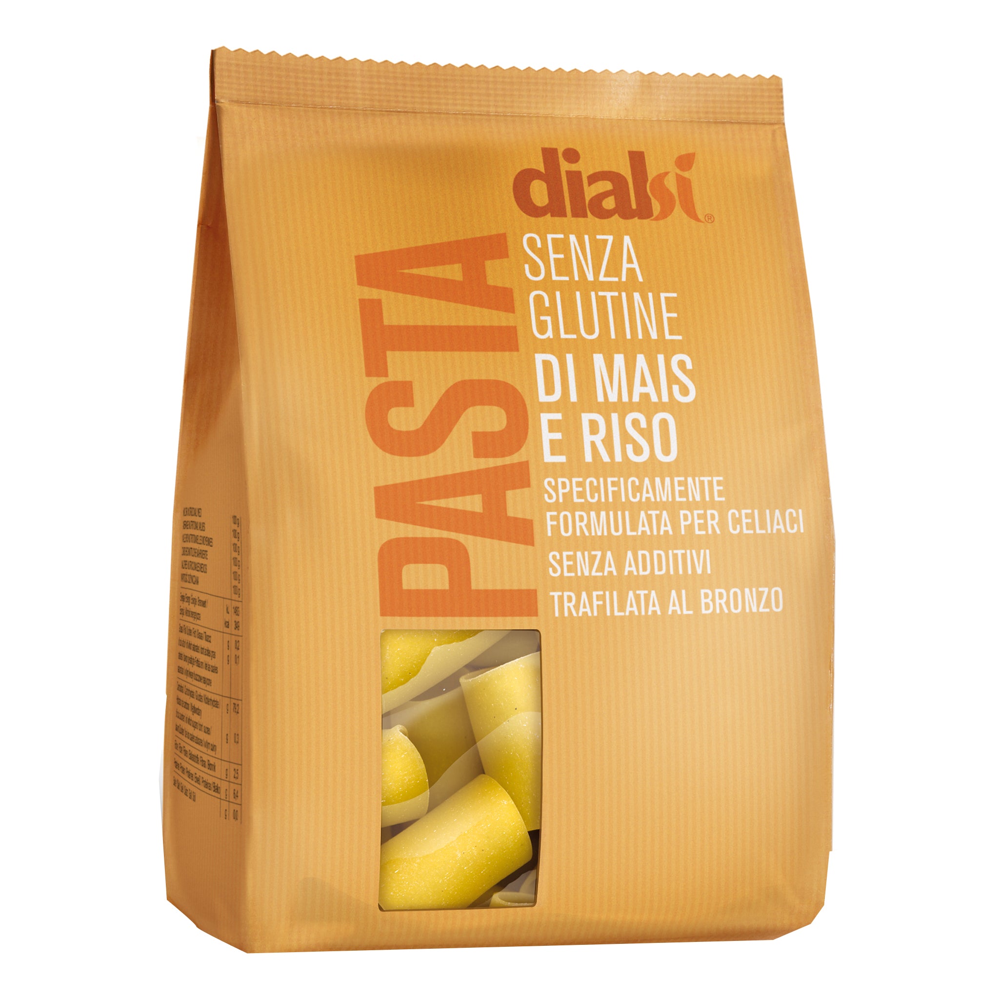 dialsì PASTA SENZA GLUTINE DI MAIS E RISO Rigatoni Descrizione Pasta specificamente formulata per celiaci senza additivi. Trafilata al bronzo....
