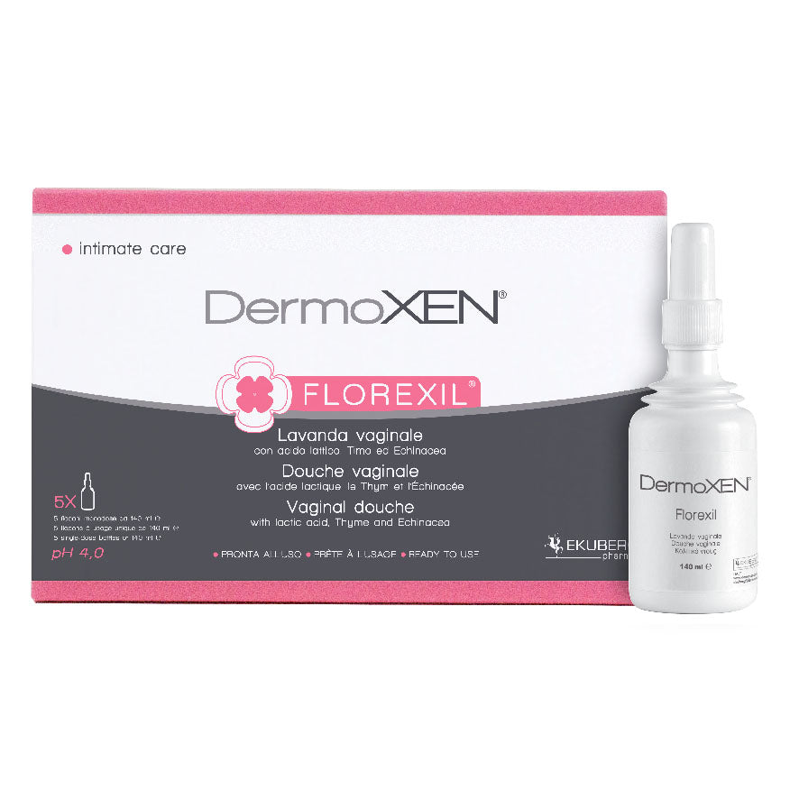 DermoXEN FLOREXIL Lavanda vaginale con acido lattico, Timo ed Echinacea PRONTA ALL'USO Schema di utilizzo Il prodotto è costituito da...