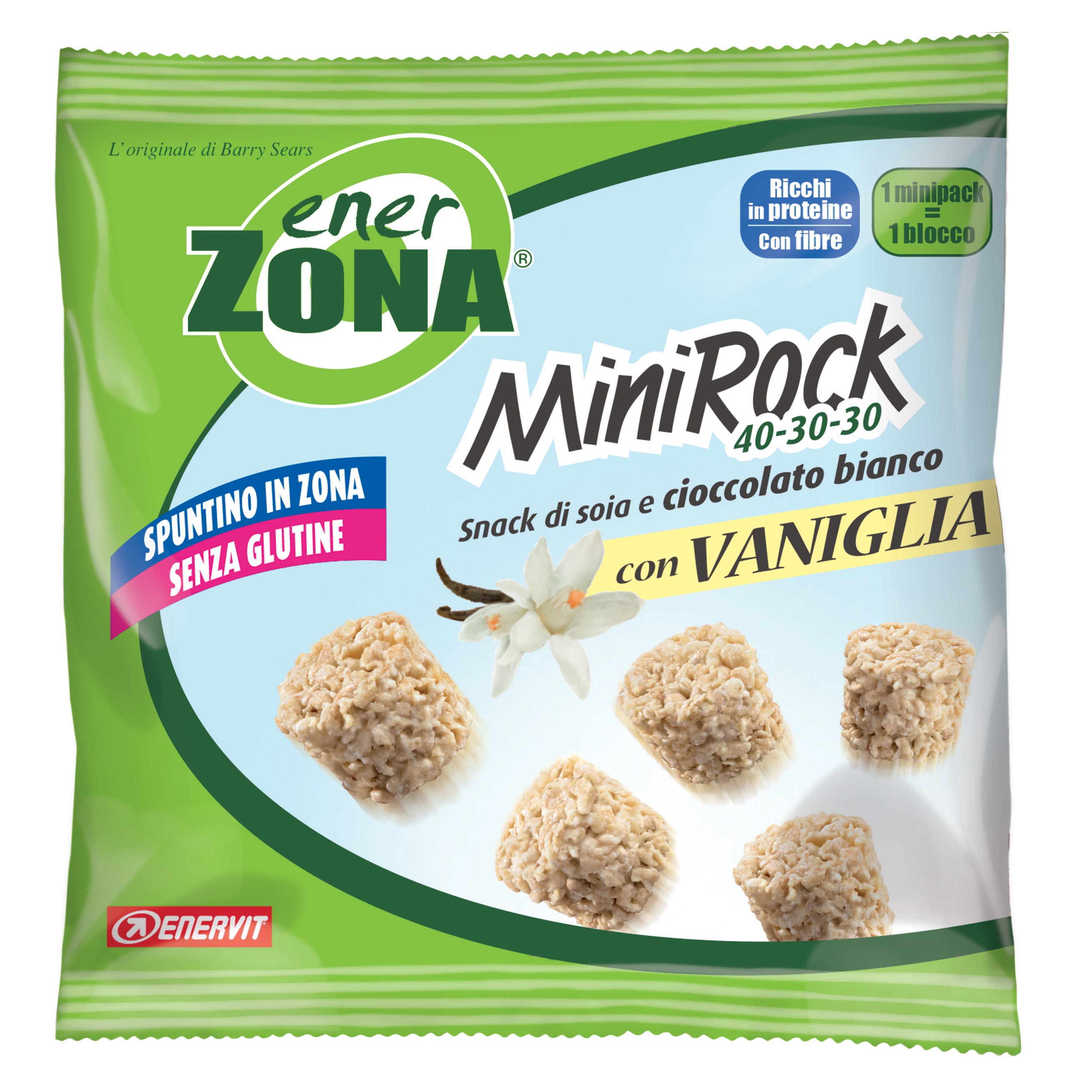 ener ZONA MiniRock 40-30-30 Snack di soia e cioccolato bianco con VANIGLIA Snack ricco in proteine e costituisce una preziosa...