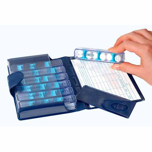 Portapillole Settimanali MEDIDOS Pratico astuccio settimanale contenente 7 portapillole giornalieri, ciascuno dei quali munito di 3 pareti interne regolabili (4...