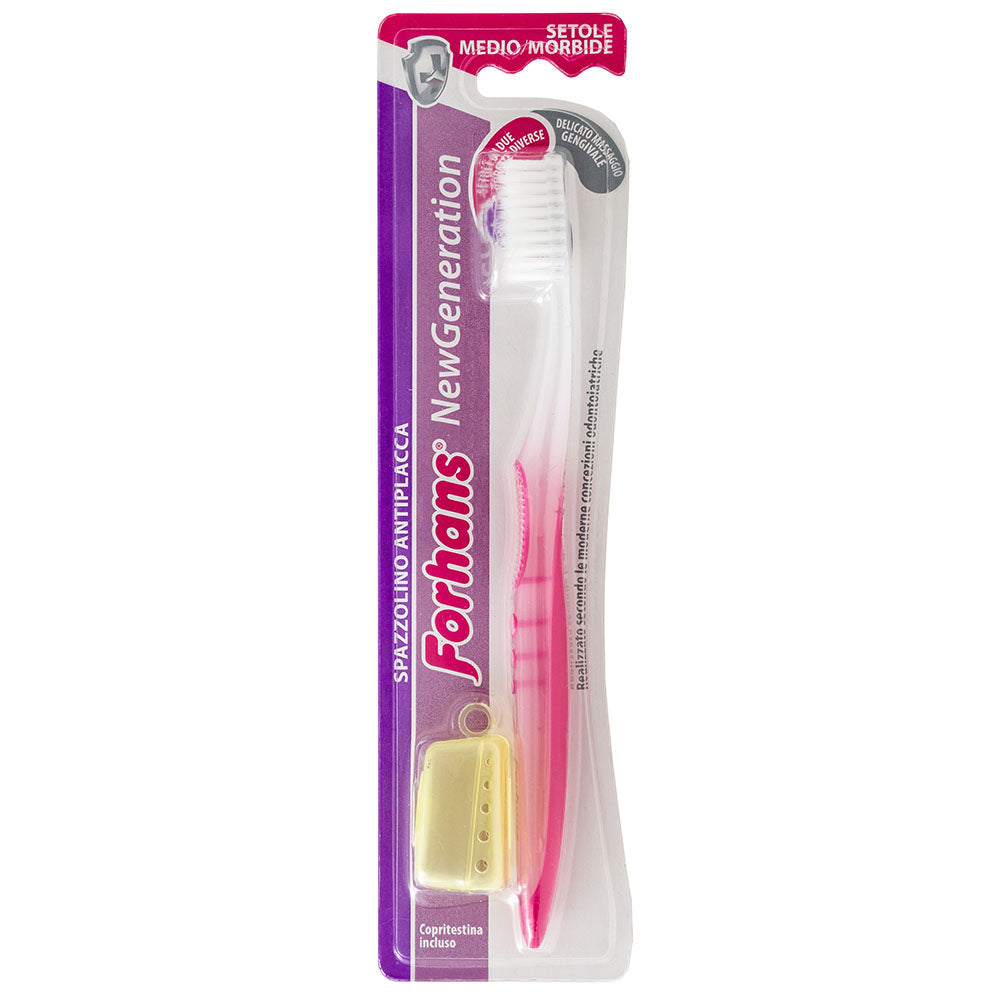 Forhans Spazzolini Antiplacca CON COPRITESTINA Caratteristiche: spazzolino realizzato seguendo le moderne tendenze dell'odontoiatria e delle richieste di mercato. Manico bi-componente...