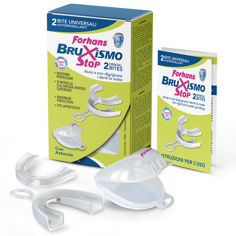 Forhans BRUXISMO STOP Descrizione Bite universale automodellante che va modellato in acqua calda per farlo adattare all'arcata dentale superiore e...