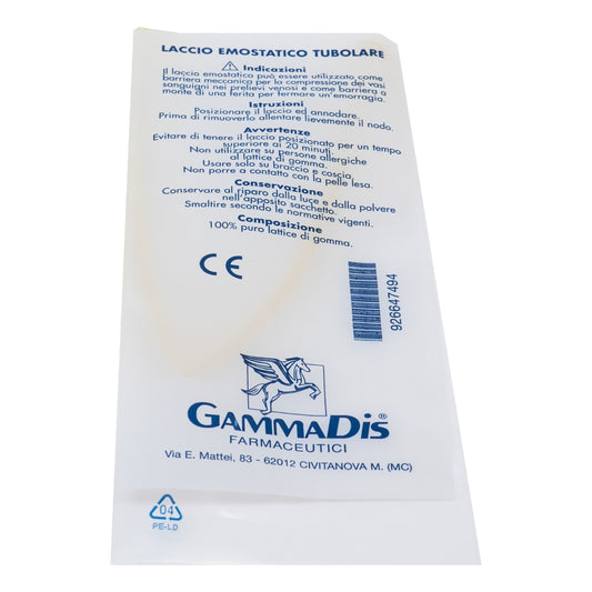 LACCIO EMOSTATICO Descrizione Laccio emostatico tubolare in lattice di gomma naturale, 36 cm. Il laccio emostatico è un dispositivo medico...