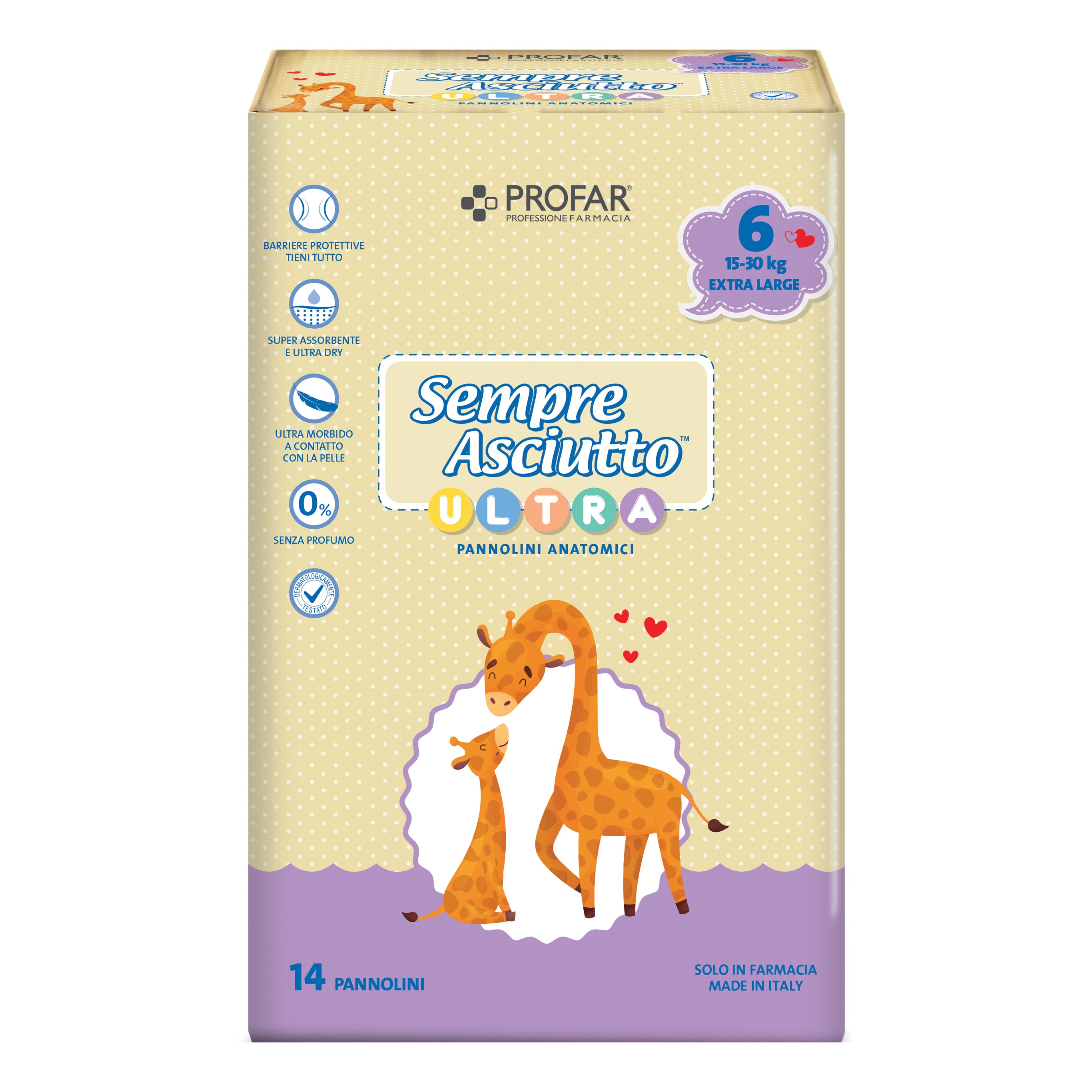SEMPRE ASCIUTTO ULTRA Descrizione Pannolino super assorbente e ultra dry. Ultra morbido a contatto con la pelle. Il nucleo assorbente,...