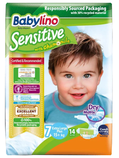 Babylino Sensitive with Chamomile Extra Large Plus 7 Descrizione Pannolini per bambini da 15+ kg di peso. Il materiale a...