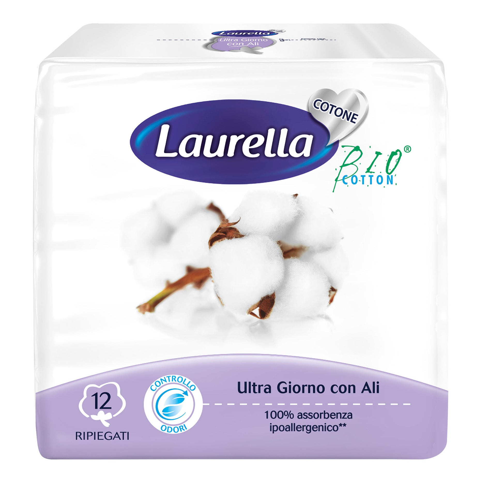 Laurella Bio cotton Ultra Giorno con ali Assorbenti ipoallergenici con il 100% dell'assorbenza. Formato 12 assorbenti ripiegati