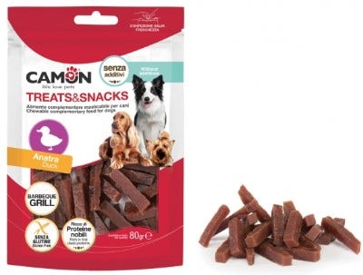 CAMON TREATS & SNACKS Bocconcini all'anatra "Barbeque Grill" Alimento complementare masticabile per cani. Spuntini ricompensa per cani adulti a base...