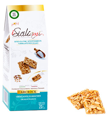 ARCROCK Descrizione Croccante di arachidi. Prodotto artigianale confezionato singolarmente. Prodotto notificato dal ministero della salute come prodotto dietetico senza glutine,...