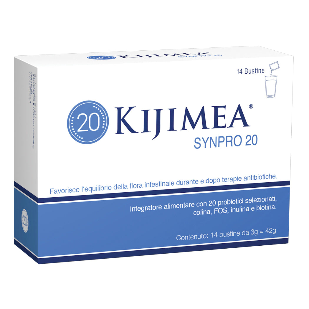 KIJIMEA SYNPRO 20 Descrizione Integratore alimentare di 20 probiotici selezionati, già presenti naturalmente nella flora intestinale. Favorisce l'equilibrio della flora...