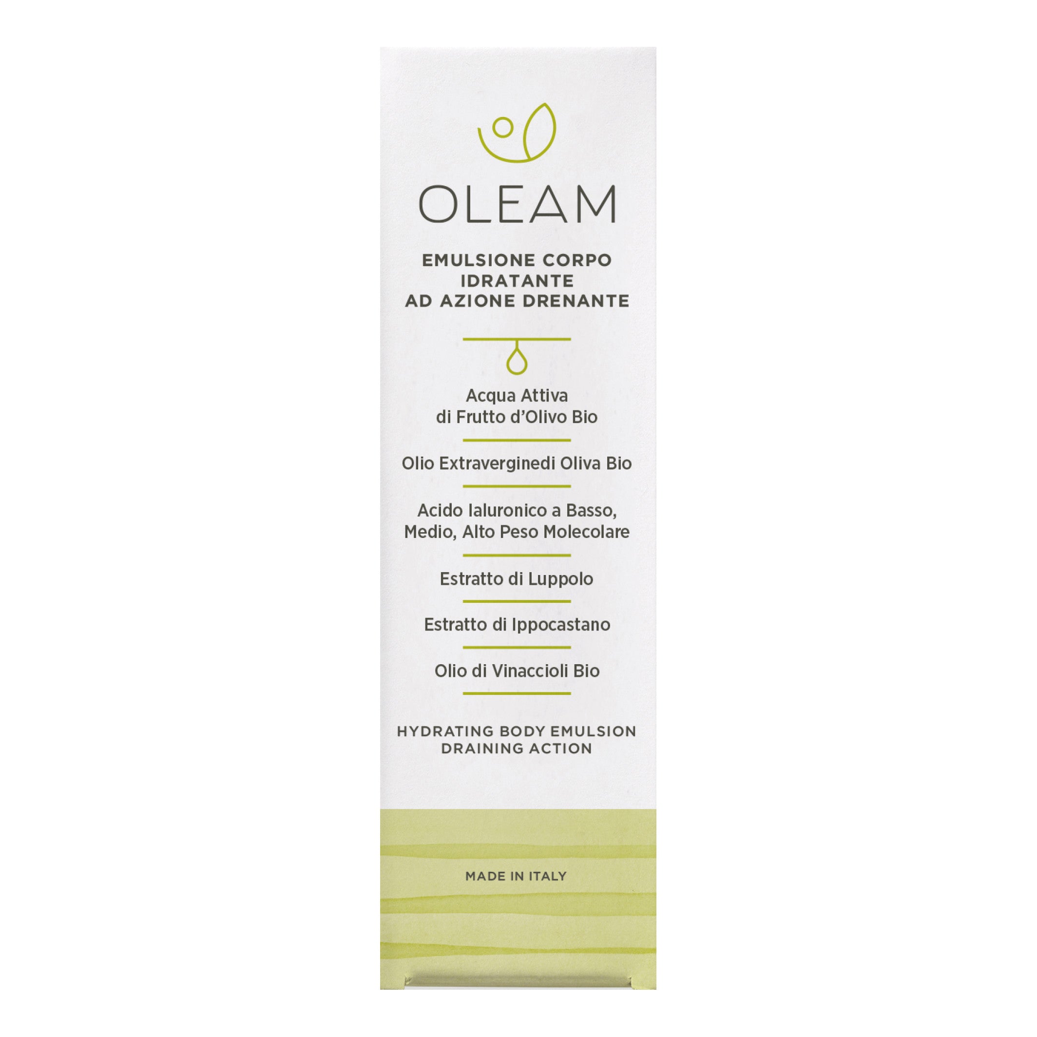 OLEAM EMULSIONE CORPO IDRATANTE AD AZIONE DRENANTE Descrizione Emulsione profumata, anti-age, drenante e idratante, aiuta a trattare gli inestetismi cutanei....