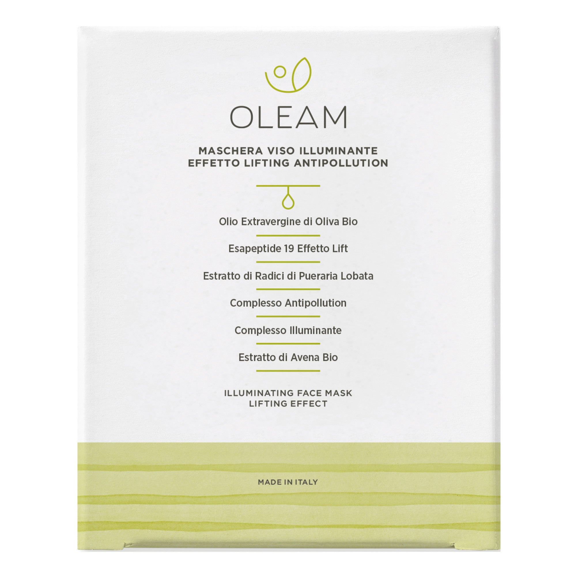 OLEAM MASCHERA VISO ILLUMINANTE EFFETTO LIFTING ANTIPOLLUTION Descrizione Maschera in cellulosa arricchita con componenti idratanti, rigeneranti, tensori ad effetto lift,...