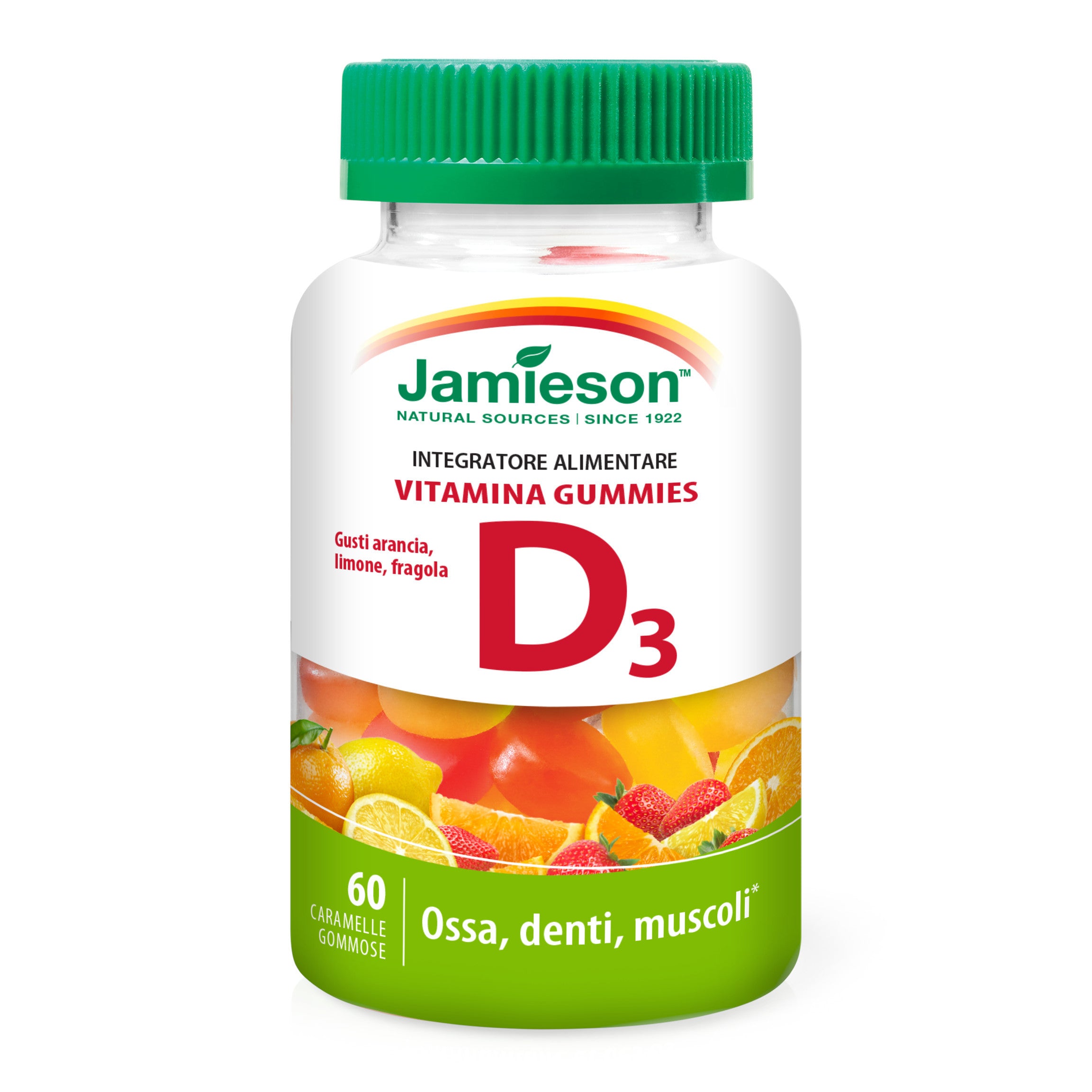 Jamieson VITAMINA D3GUMMIES Descrizione Integratore alimentare di vitamina D3, utile per la normale funzione de sistema immunitario e per il...