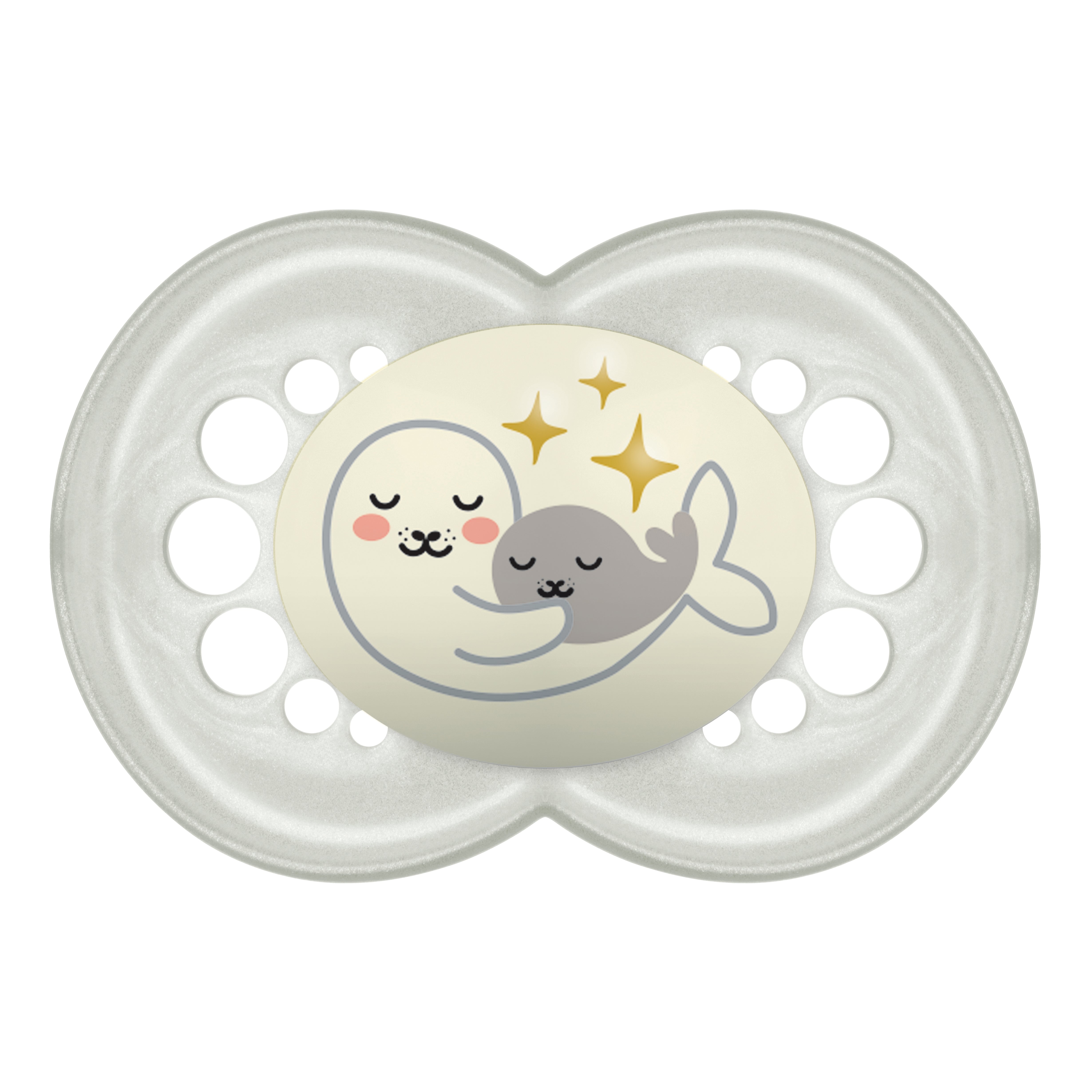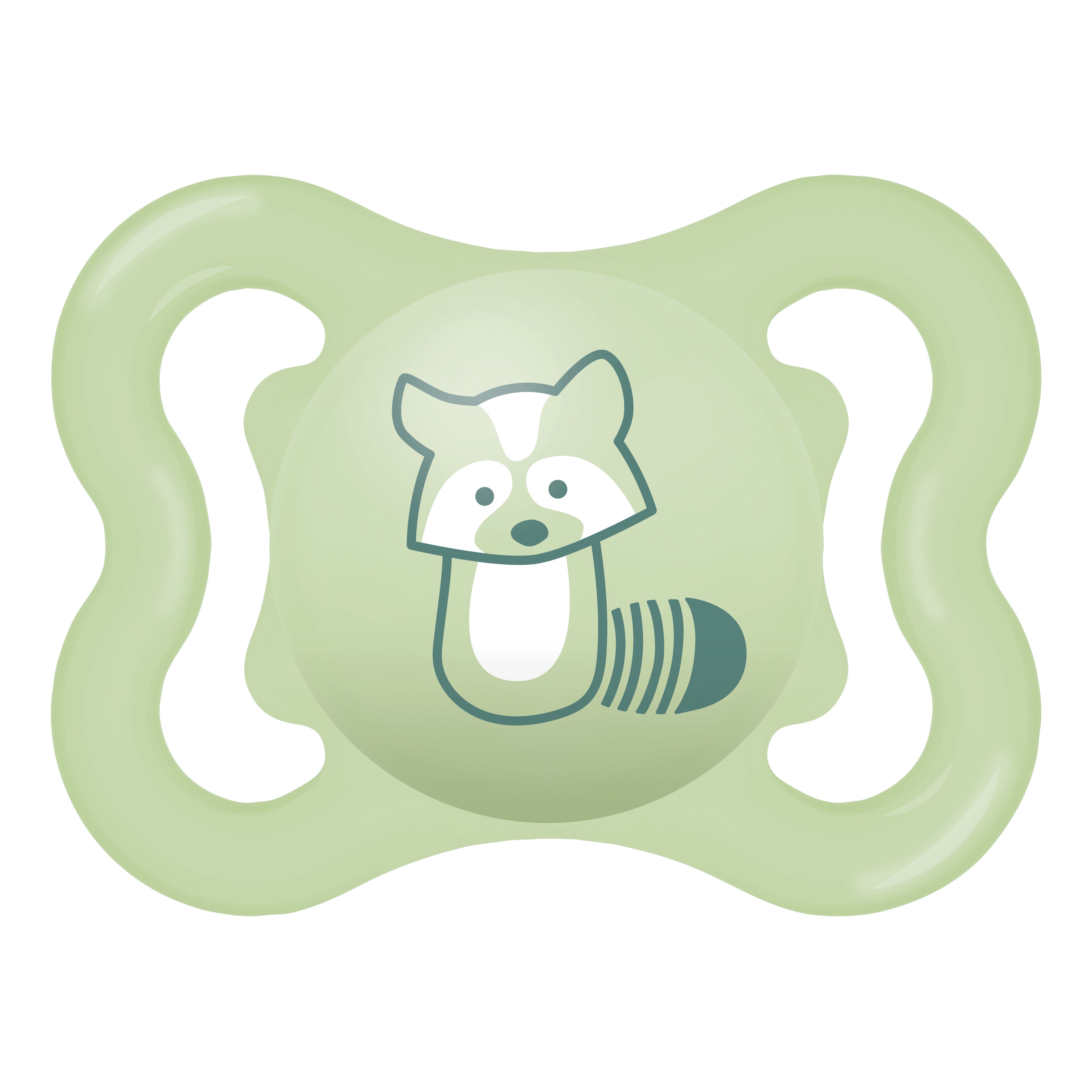 MAM Air Night 6+ Wild Animals - Succhietto Silicone doppio femmina Descrizione I fori di ventilazione extra-large del ciuccio luminoso...