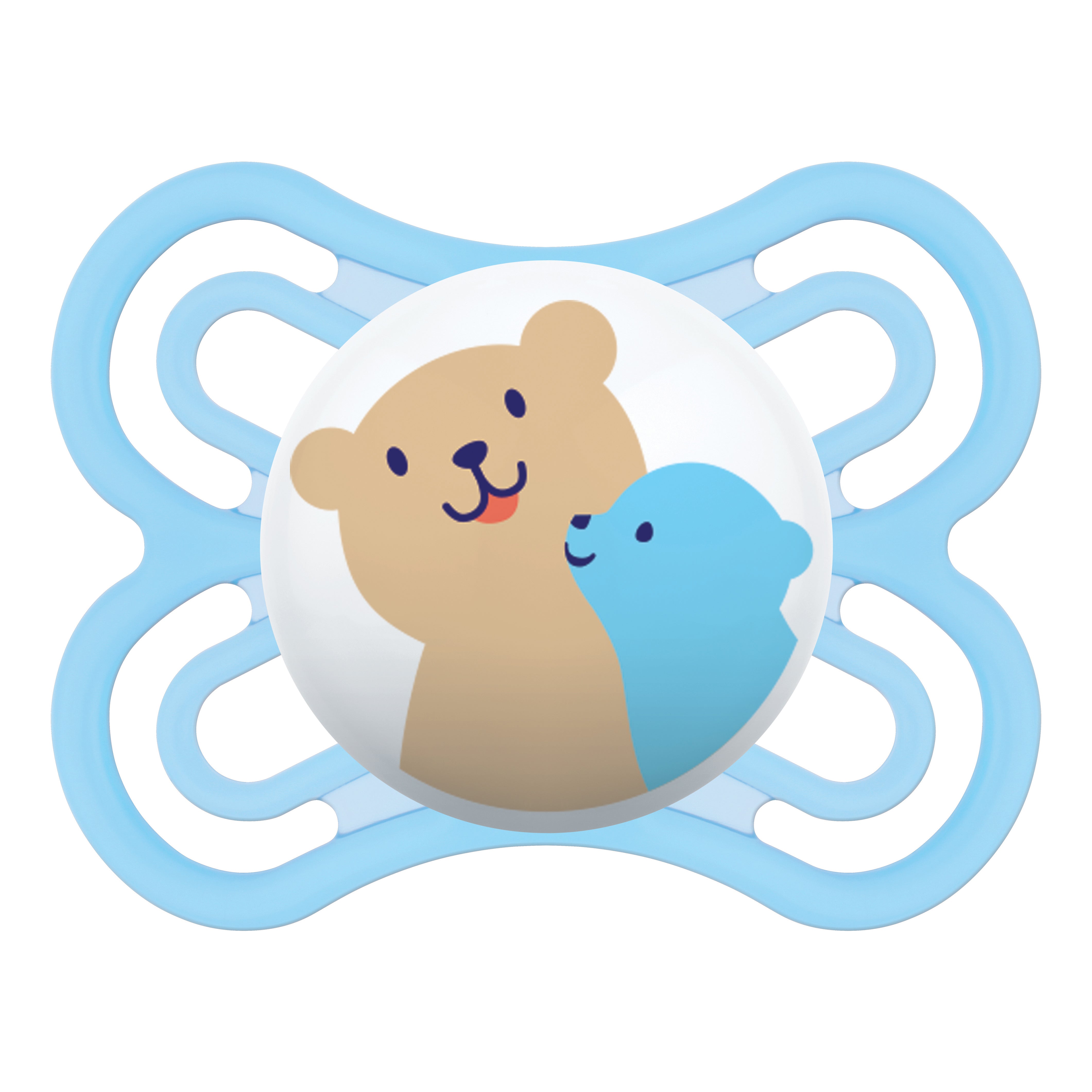 MAM Original - Succhietto Silicone doppio maschio Descrizione Delicato sulla pelle grazie agli ampi fori di ventilazione e agli incavi...