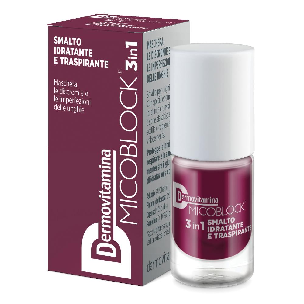 Dermovitamina MICOBLOCK3in1 Descrizione Smalto per unghie. Con speciale formulazione idratante e traspirante, ad azione elasticizzante. Texture sottile e coprente, asciuga...