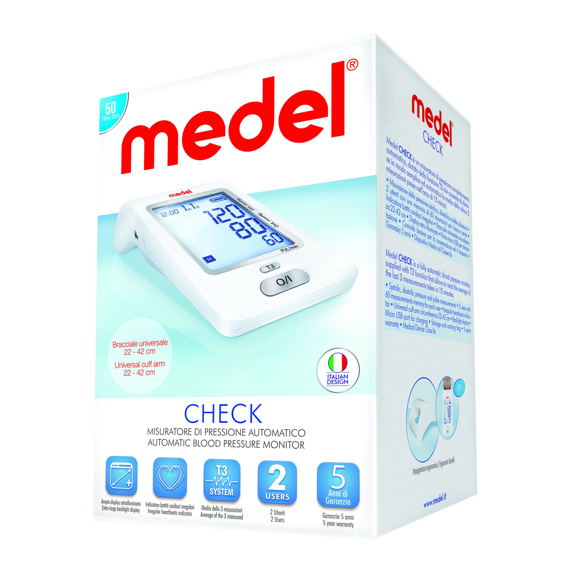 Medel CHECK Descrizione Dispositivo medico. Misuratore di pressione digitale completamente automatizzato per adulti che, mediante metodo di misurazione oscillometrico, permette...
