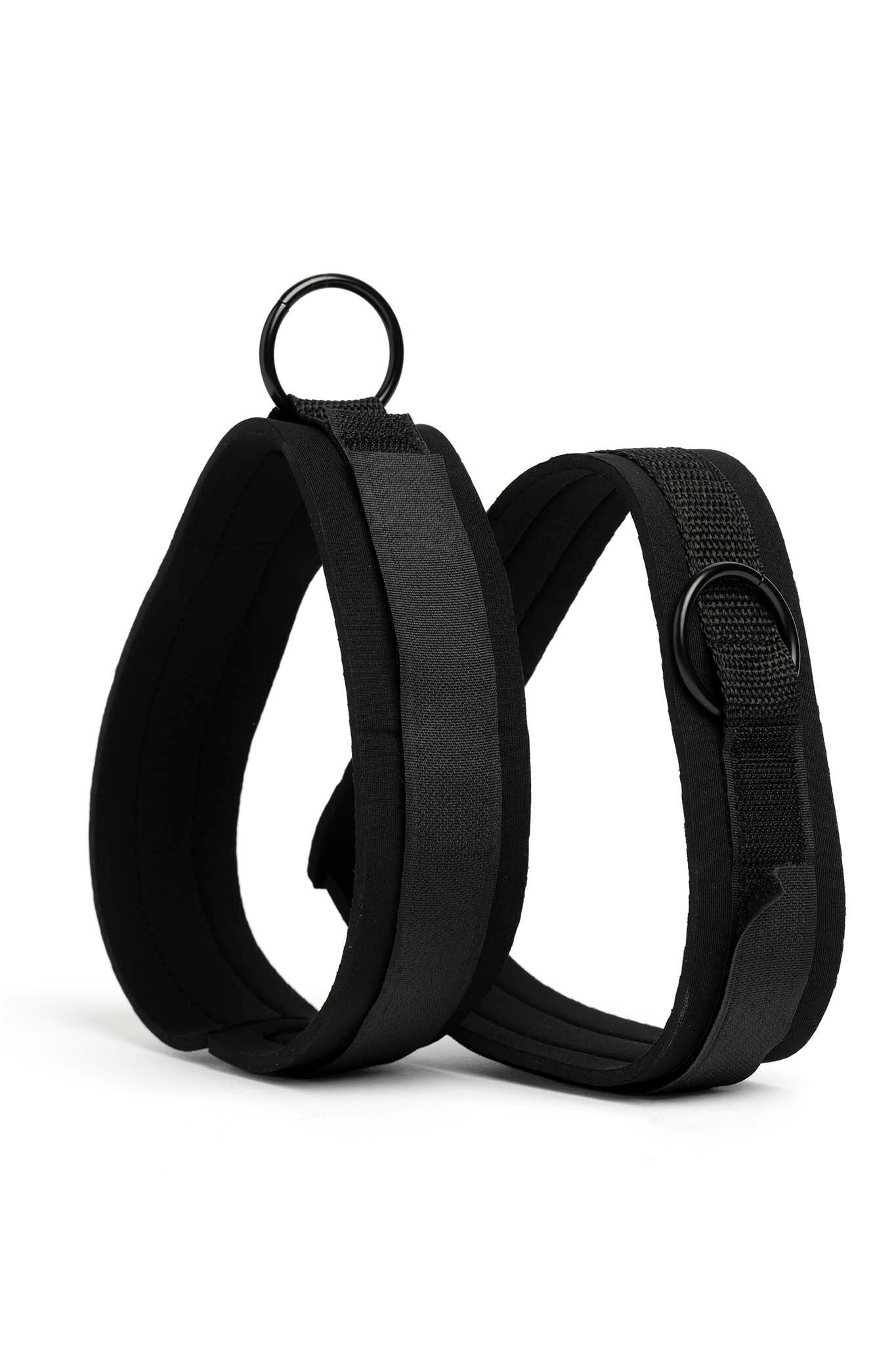 Manette per gambe Uso Posizionare le manette regolabili attorno alle cosce del partner. Attaccare le clip delle manette agli anelli...