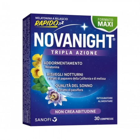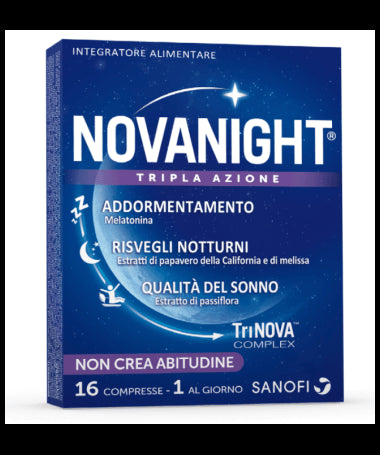 NOVANIGHT Descrizione Integratore alimentare con la combinazione TriNOVA COMPLEX, studiata sulle tre fasi del sonno, che contiene: - melatonina: aiuta...