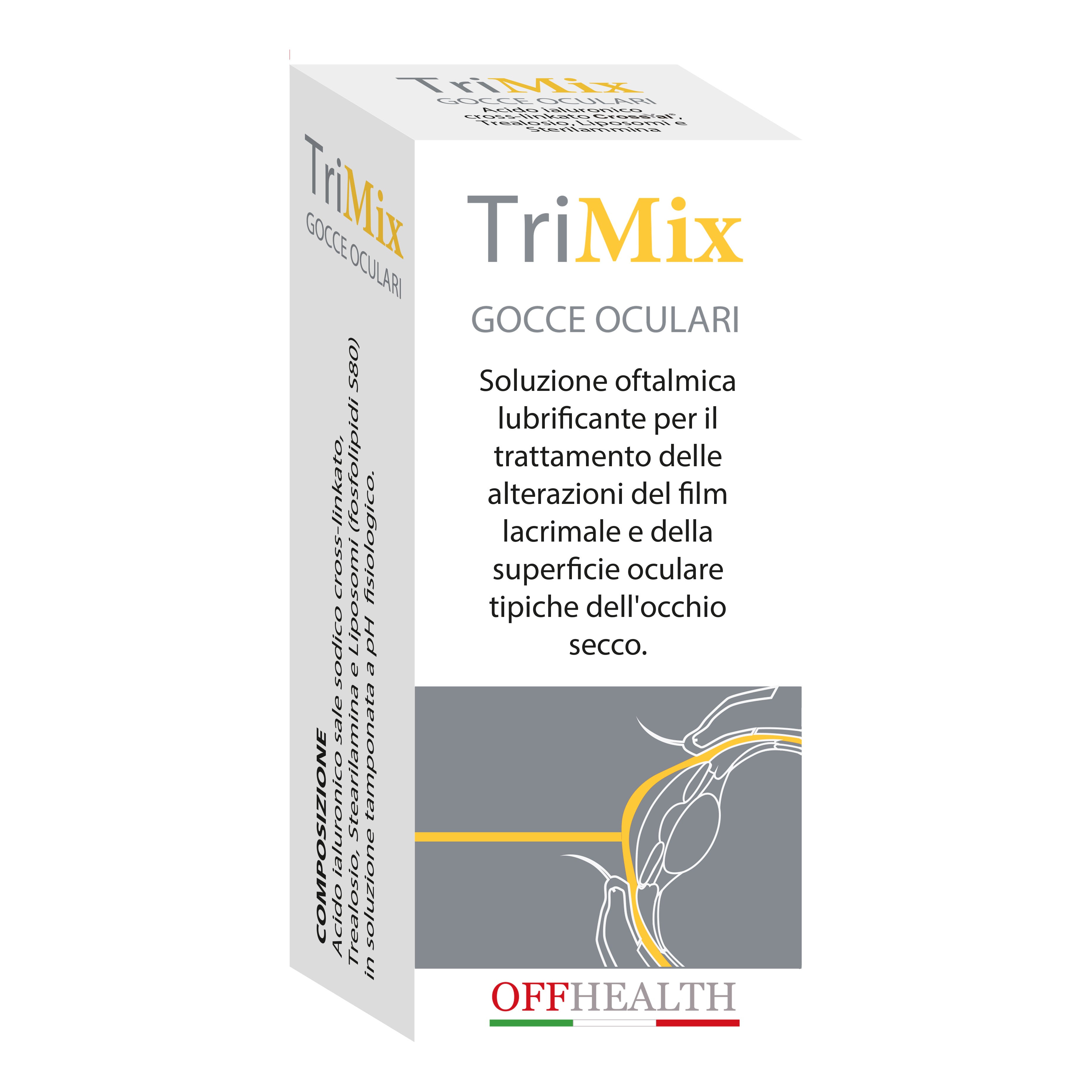 TriMix COLLIRIO Descrizione Soluzione oftalmica protettiva, idratante e lubricante a base di acido Ialuronico salesodico cross-linkato, trealosio, stearilamina e liposomi,...