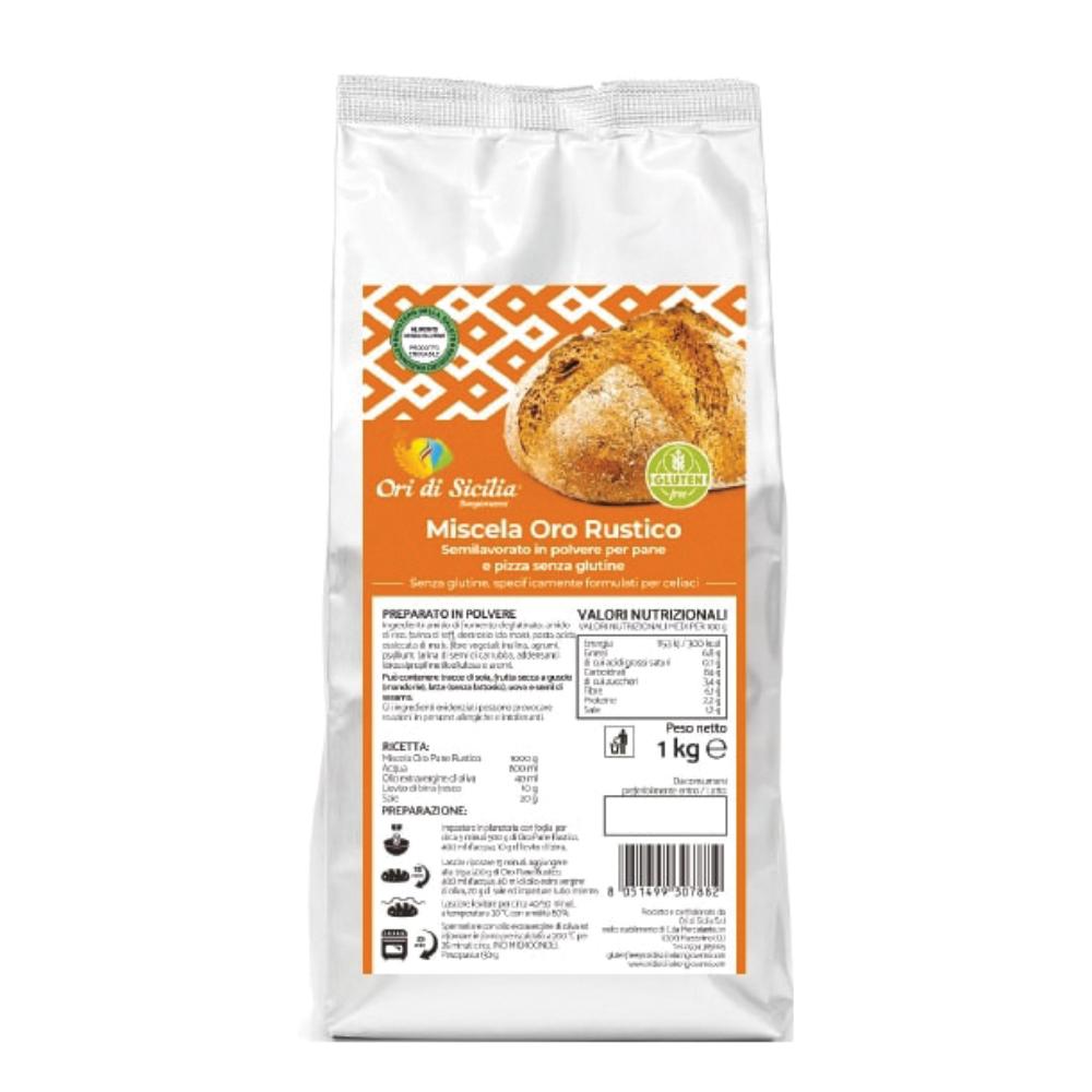 Ori di Sicilia Miscela Oro Rustico Descrizione Preparato in polvere specificamente formulato per celiaci. Prodotto che consente di ottenere un...