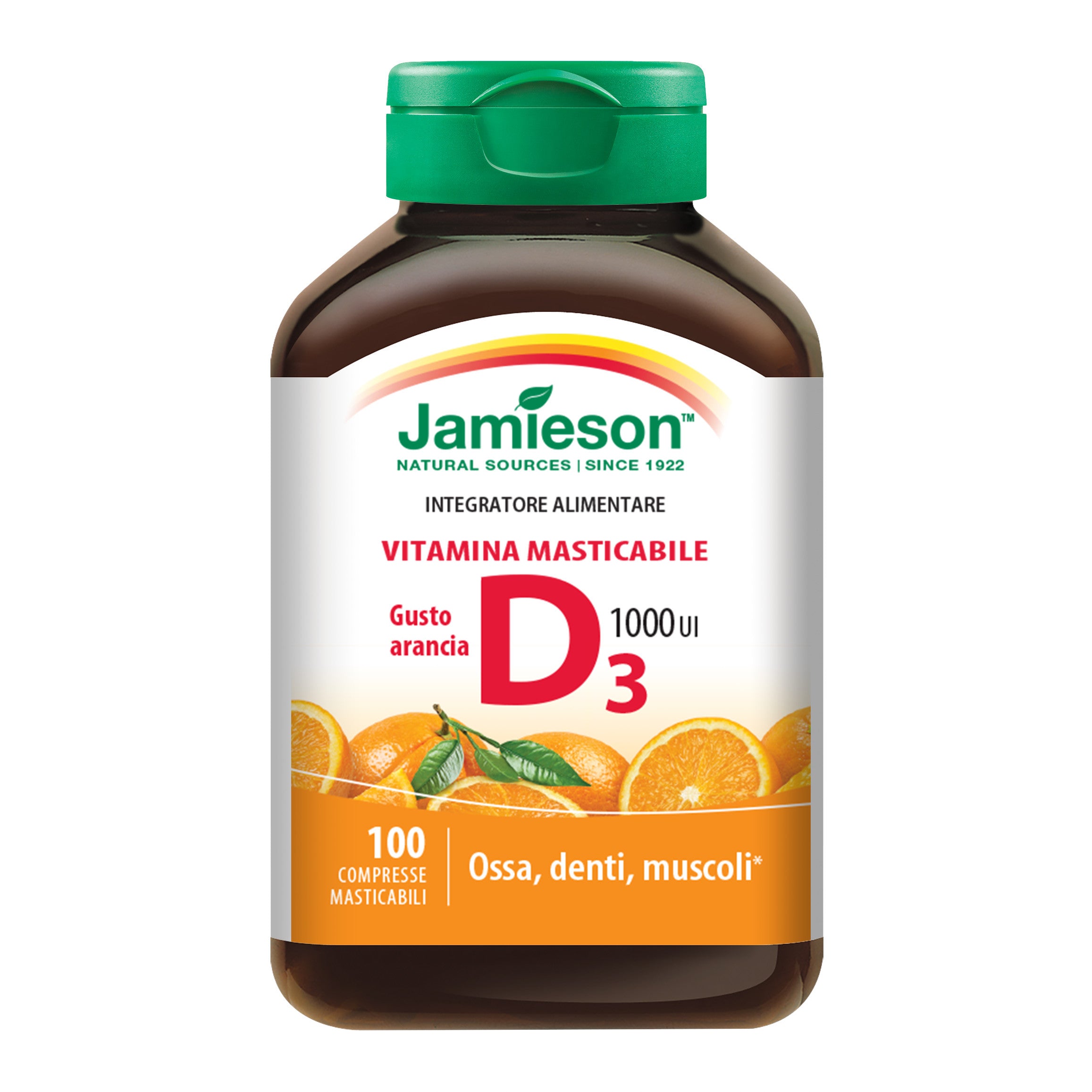 Jamieson VITAMINA D3Gusto arancia Descrizione Integratore alimentare di vitamina D3, utile per ossa, denti e muscoli. Con zucchero ed edulcorante....