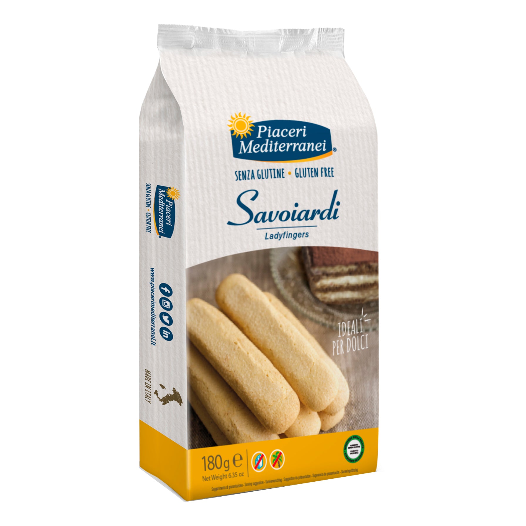 Piaceri Mediterranei Savoiardi Descrizione Biscotti Savoiardi. Senza olio di palma. Ingredienti Uova intere (32%), zucchero semolato, fecola di patate, farina...